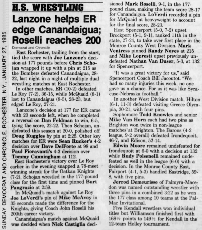 Mike LoPresti (Spencerport) > Nathan Van Duzer (Brockport) decision 5-3