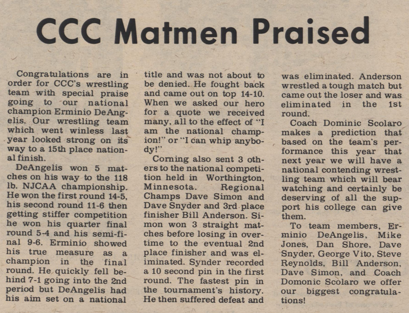 Erminio DeAngelis (CCC) > Rick Zamorano (PCC) decision 14-11