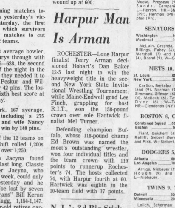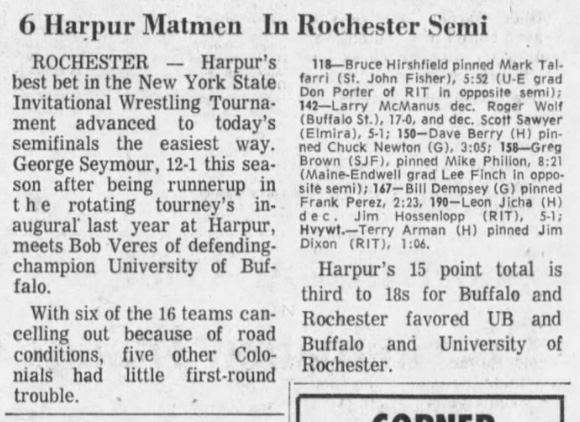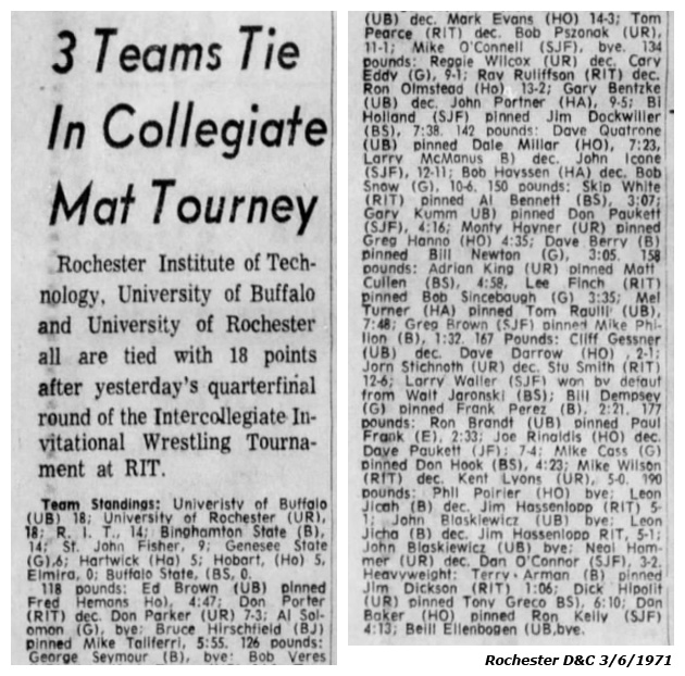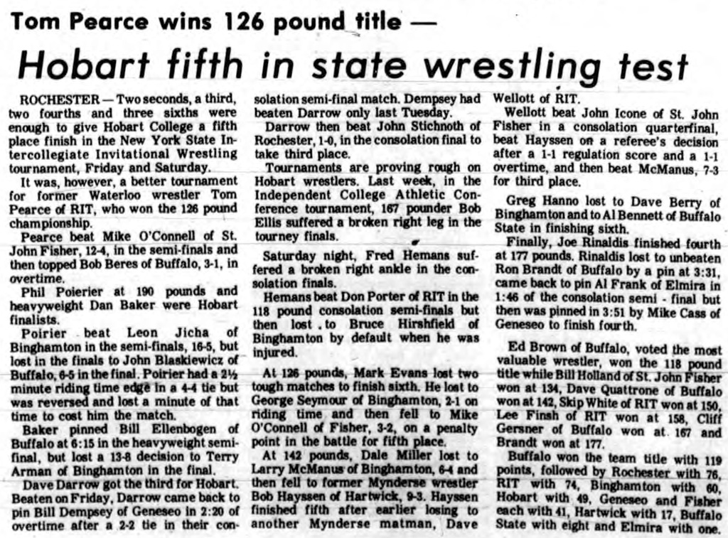 Dave Darrow (HC) > Bill Dempsey (Geneseo) fall 9:20 (1OT)