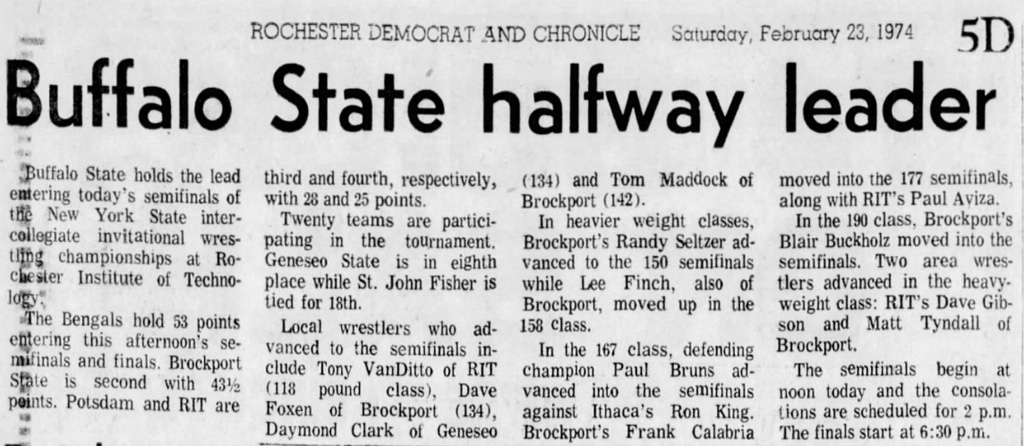 150 Randy Seltzer (Brockport) > Dan Caterisano (Oswego) decision 6-4