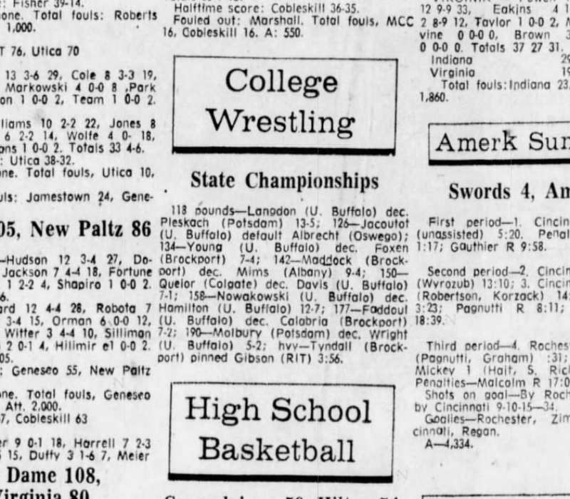 142 Tom Maddock (Brockport) > Larry Mims (UA) decision 9-4
