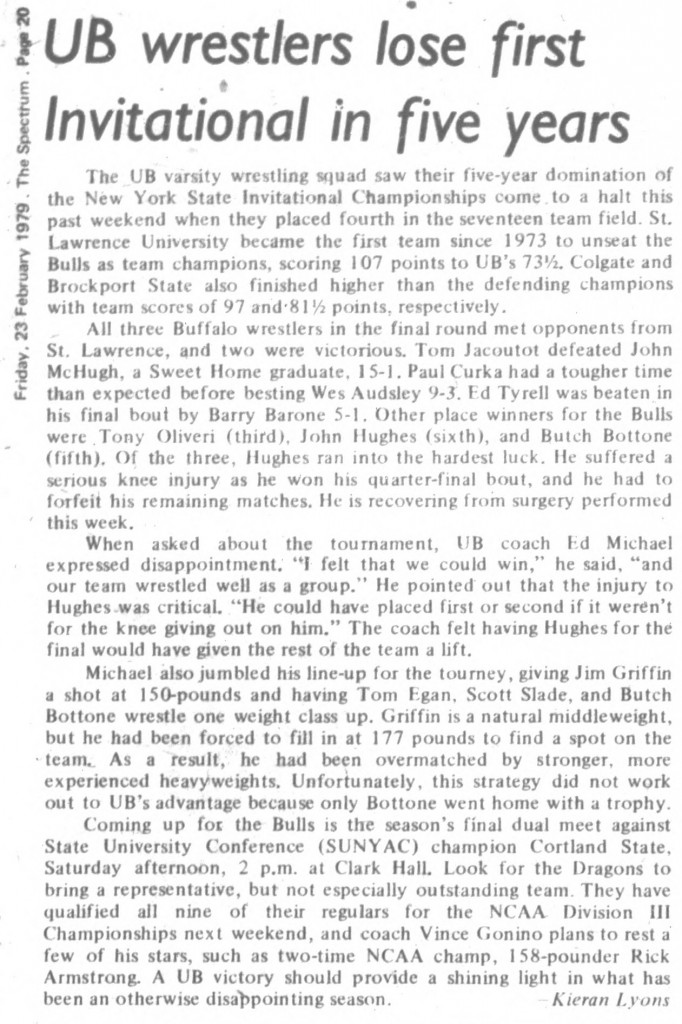 Bob Carbo (Oswego) > Kevin Richard (Brockport) decision 10-6