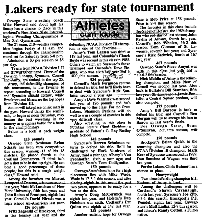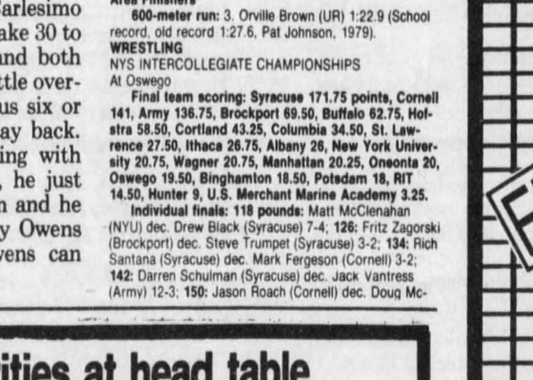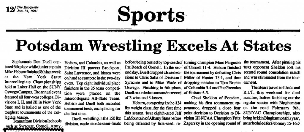 Mike Wade (Oswego) > Don Duell (Potsdam) decision 8-3
