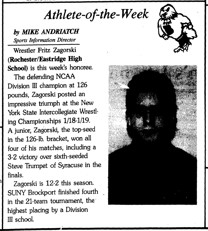 Fritz Zagorski (Brockport) > Steve Trumpet (SU) decision 3-2