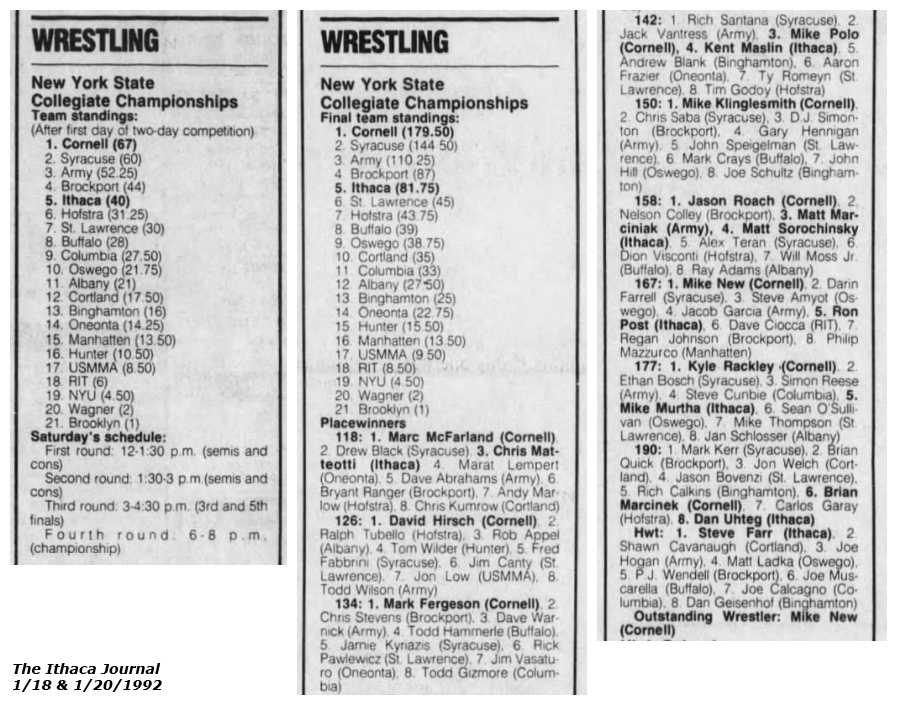 Jim Vasaturo (Oneonta) > Todd Gizmore (CU) decision 4-1