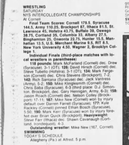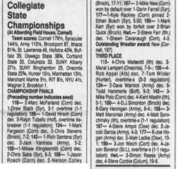 Mark Kerr (SU) > Brian Quick (Brockport) forfeit