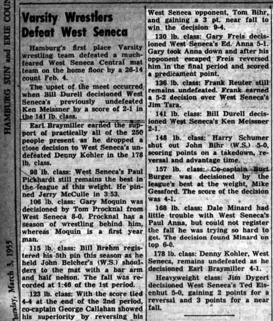 Bill Brehm (Hamburg) > John Belcher (WS) fall 1:46