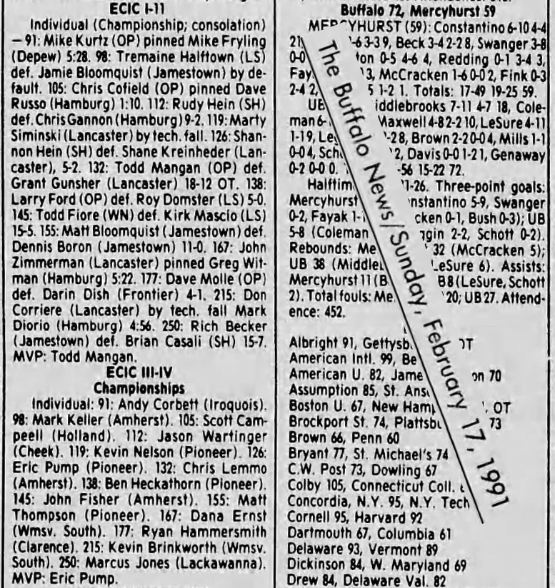 Ryan Hammersmith (Clarence) > Dave Kratzke (Alden) fall 5:04