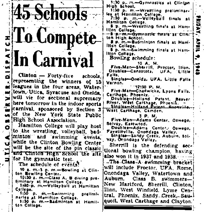 Van Hornesville [NY] 28, Watertown [NY] 24, Whitesboro [NY] 20, Ilion [NY] 4, Sandy Creek [NY] 4, Chittenango [NY] 3, Sauquoit Valley [NY] 3,