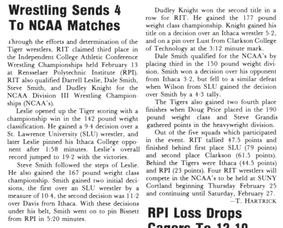 Darrell Leslie (RIT) > Jeff Mettais (SLU) decision 9-6