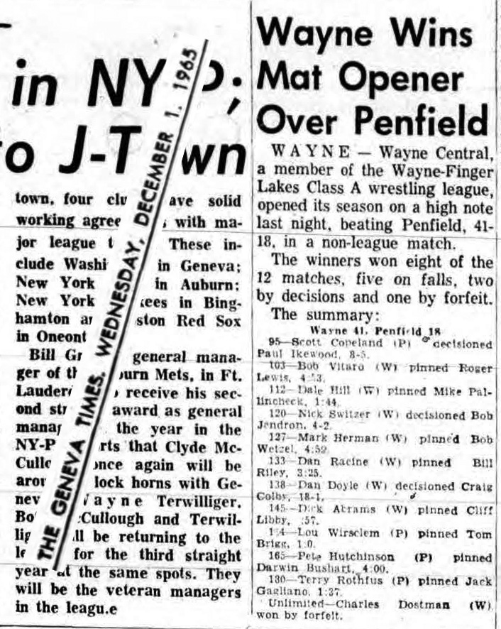 103 Bob Vitaro (Wayne) > Roger Lewis (Penfield) fall 4:53