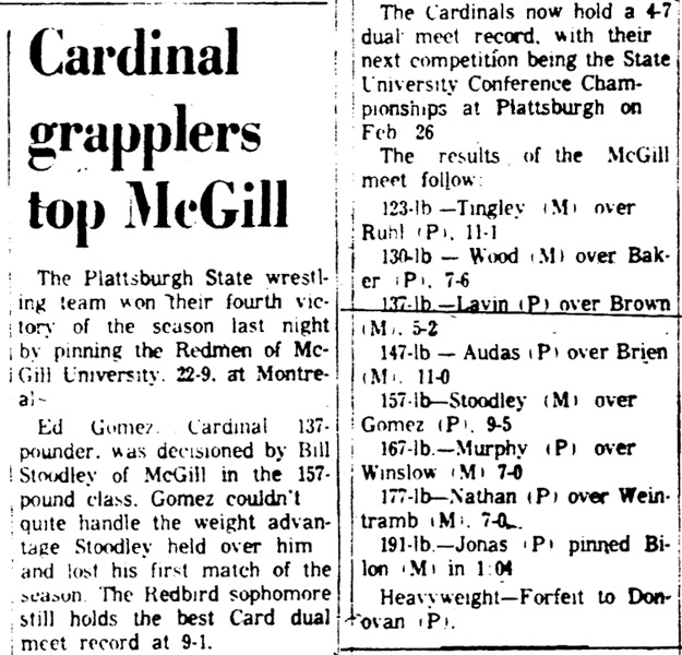 Ron Stoodley (MGU) > Ed Gomez (Plattsburgh) decision 9-5