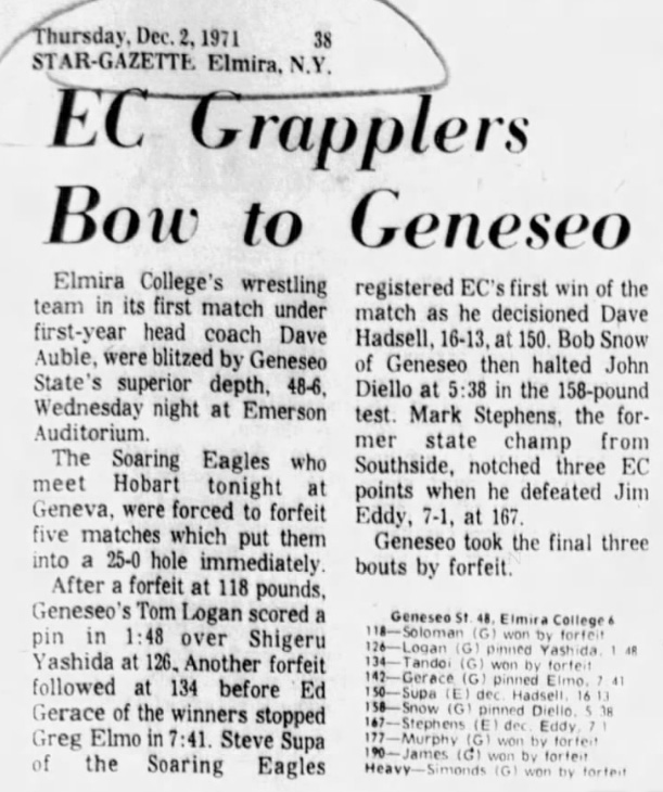 158 Bob Snow (Geneseo) > John Diello (EC) fall 5:38