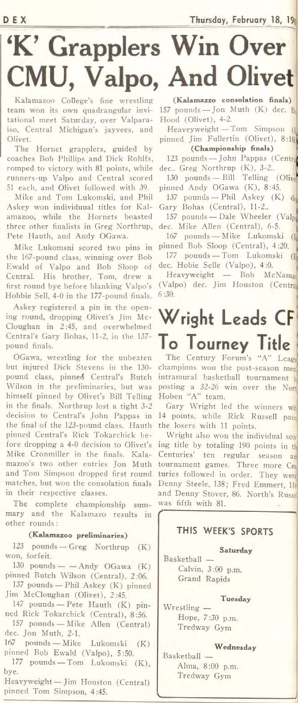 Kalamazoo College Invitational Wrestling Tournament