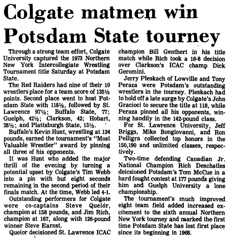 Jerry Pleskach (Potsdam) > John Graziaoci (CU) decision 9-7