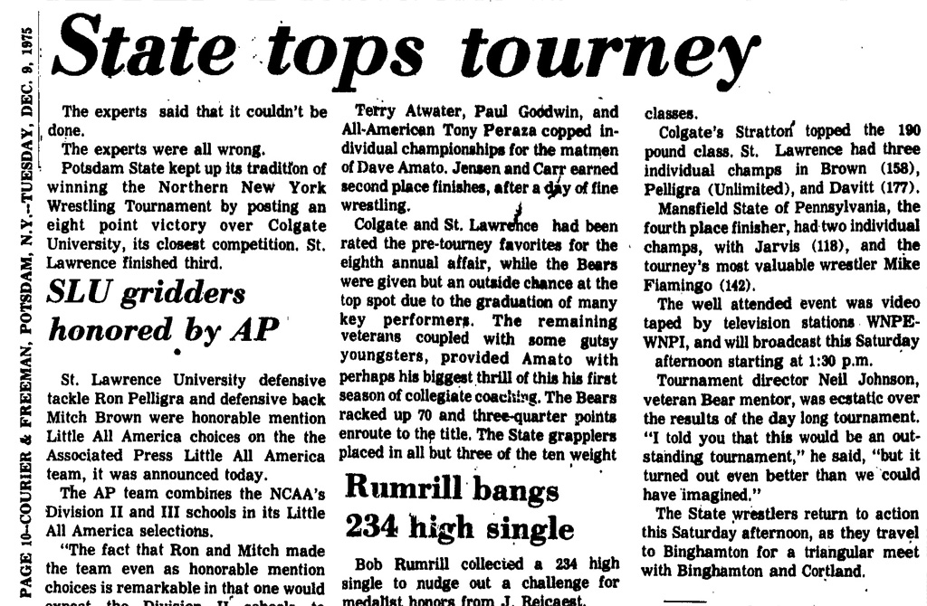 177 Joe Davitt (SLU) > Steve Carr (Potsdam) decision 15-14