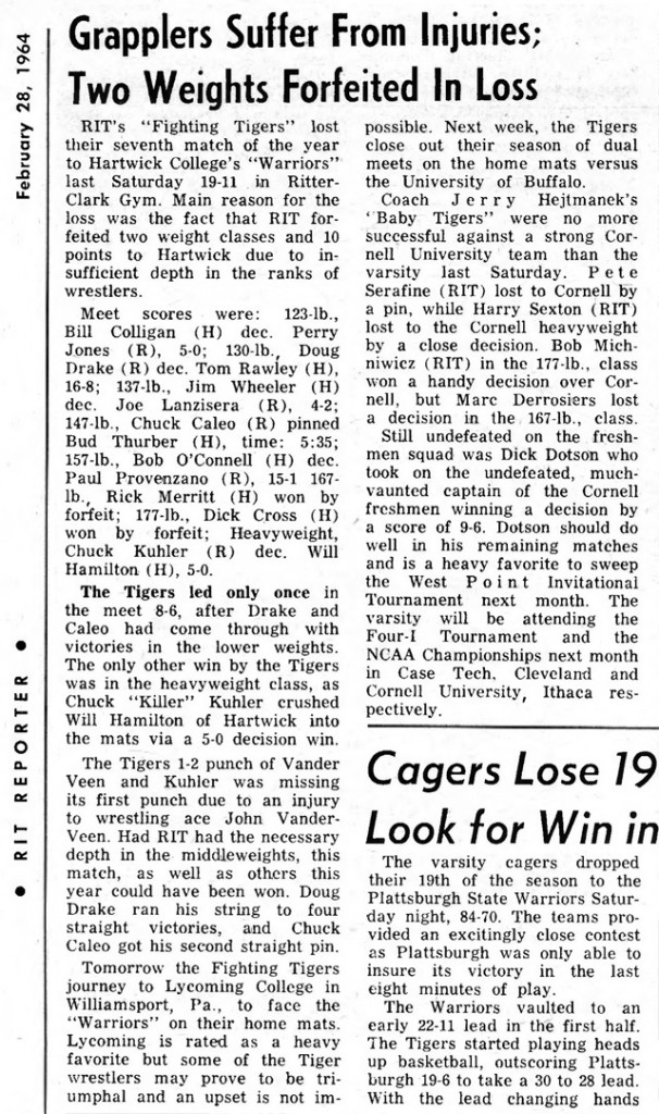 Doug Drake (RIT) > Tom Riley (HC) decision 16-8