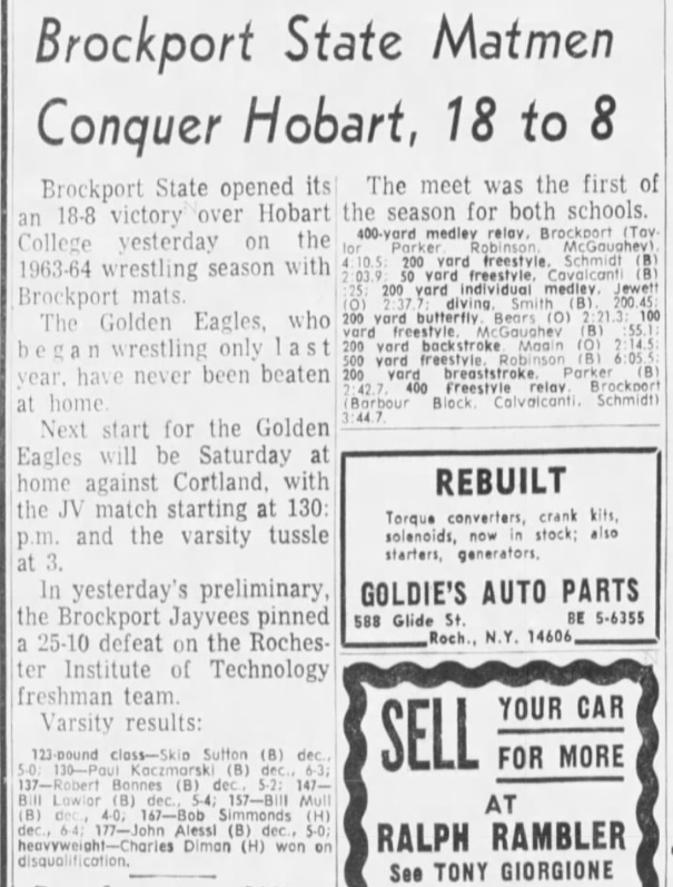 Bob Bonnes (Brockport) > Bob Parrish (HC) decision 5-2