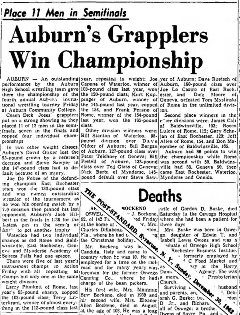 Joe Zona (Mynderse) > Ron Ross (Auburn) decision 13-7