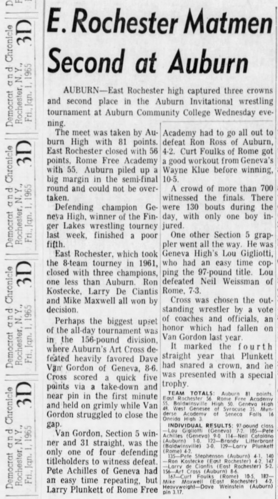 133 Pete Stephanson (Auburn) > Gene Powers (Baldwinsville) decision 4-1