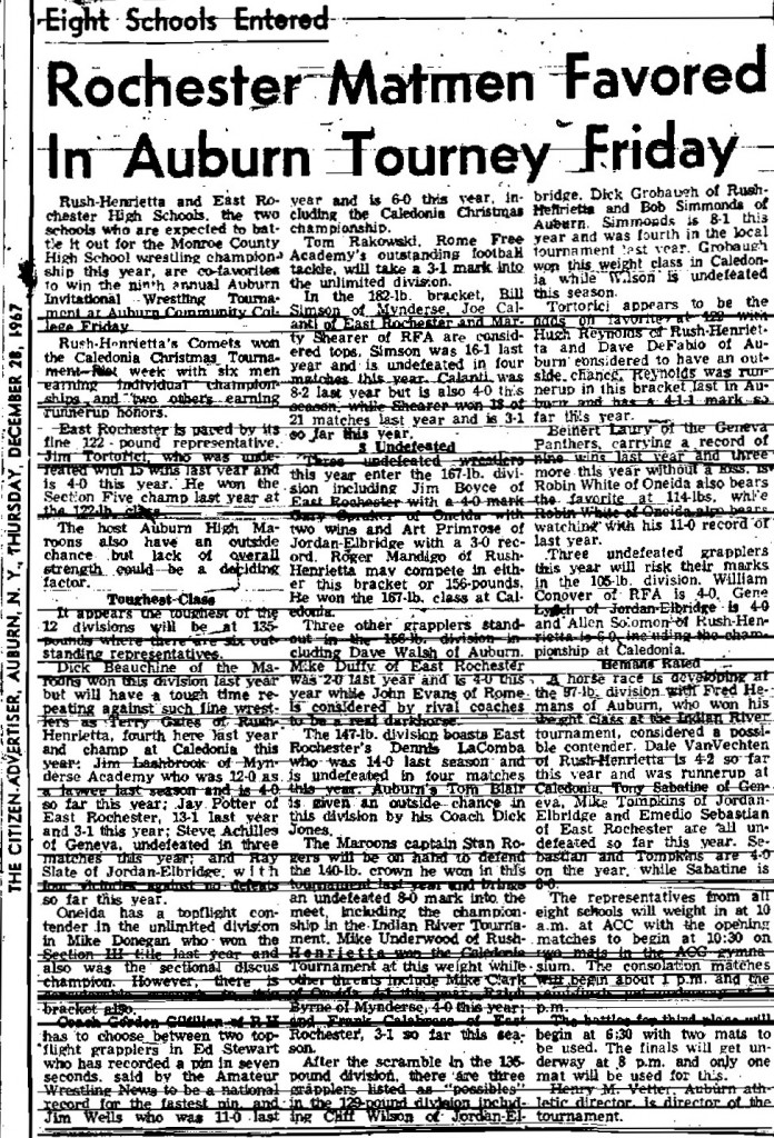 Dave Walsh (Auburn) > Spaker (Oneida) fall 3:00