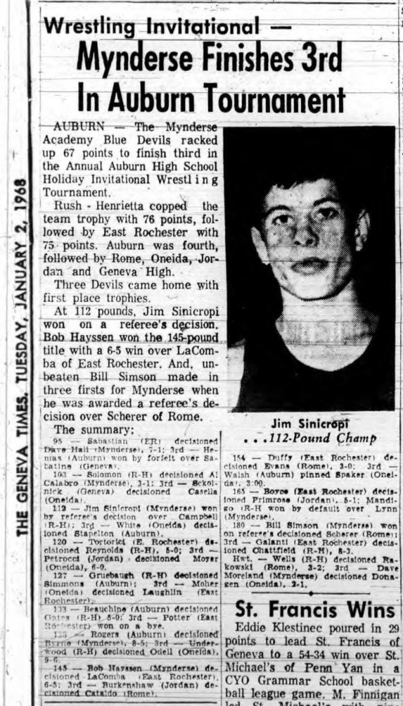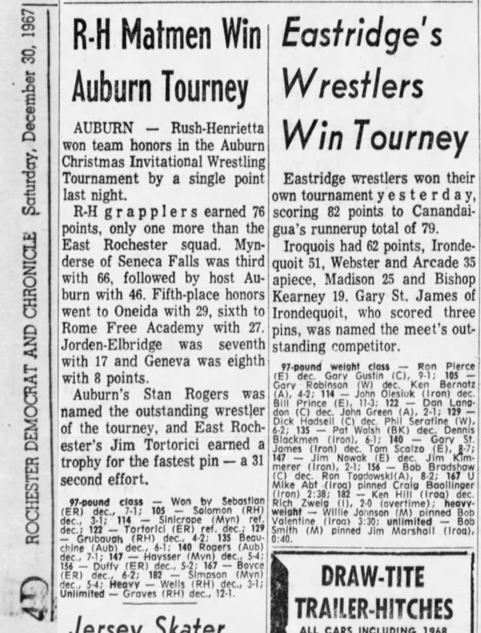 Stan Rogers (Auburn) > Ralph Byrne (Mynderse) decision 8-5