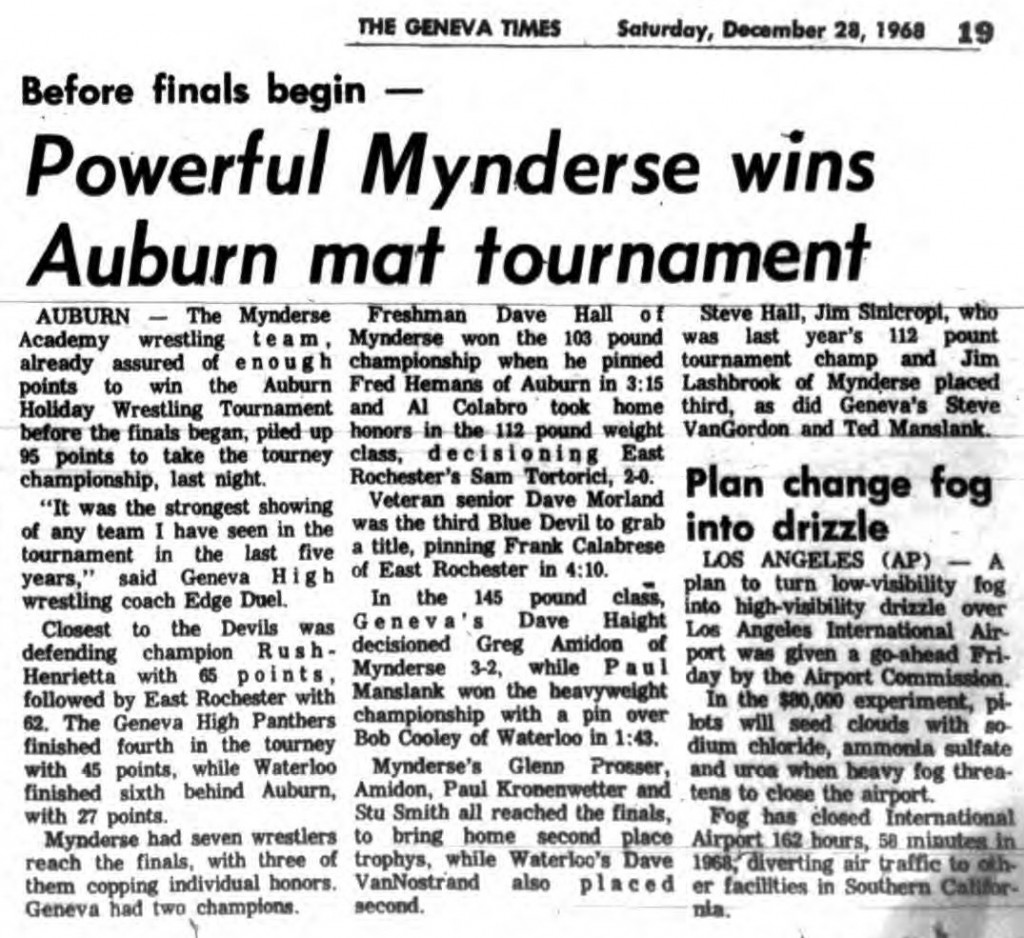 Dave Hall (Mynderse) > Fred Hemans (Auburn) fall 3:37