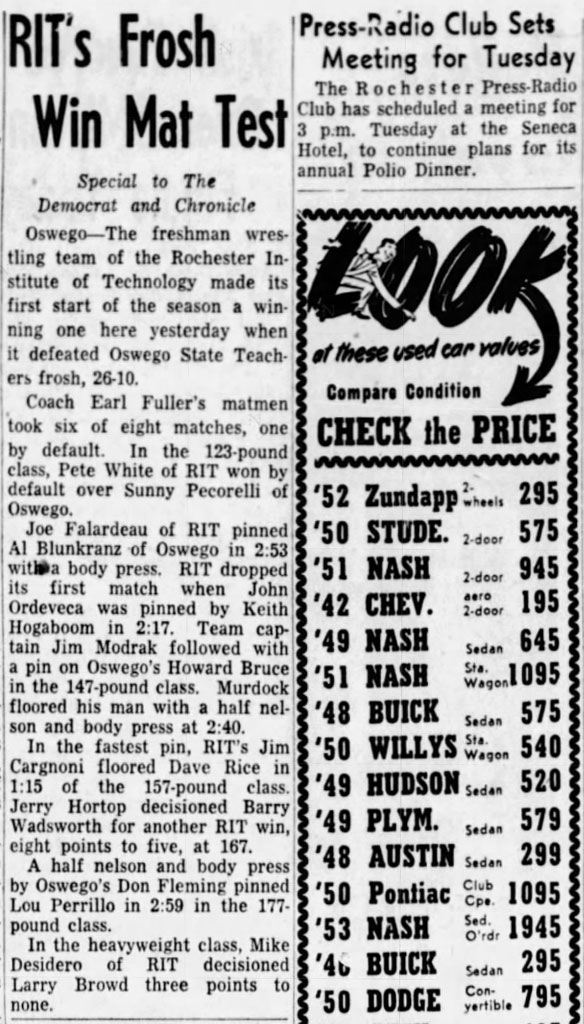 Rochester Institute of Technology (Freshman) 26, SUNY Oswego 10