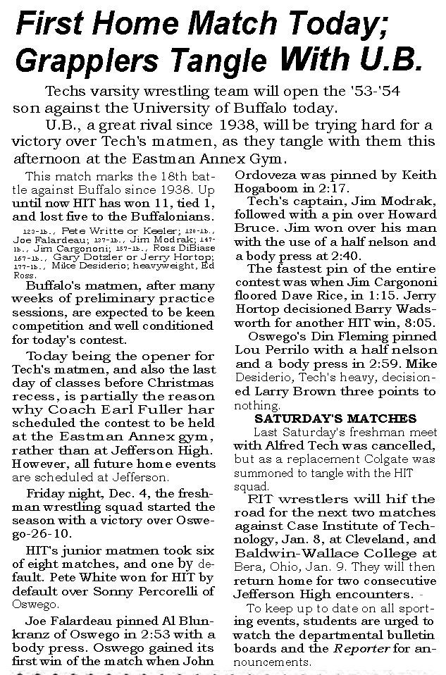 Jerry Hortop (RIT (Freshman)) > Barry Wadsworth (Oswego) decision 8-5