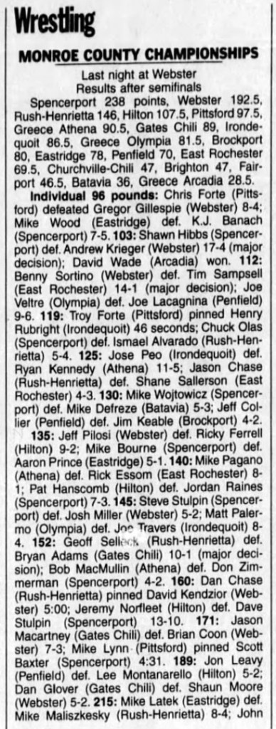 Troy Forte (Pittsford) > Chuck Olas (Spencerport) decision 2-1