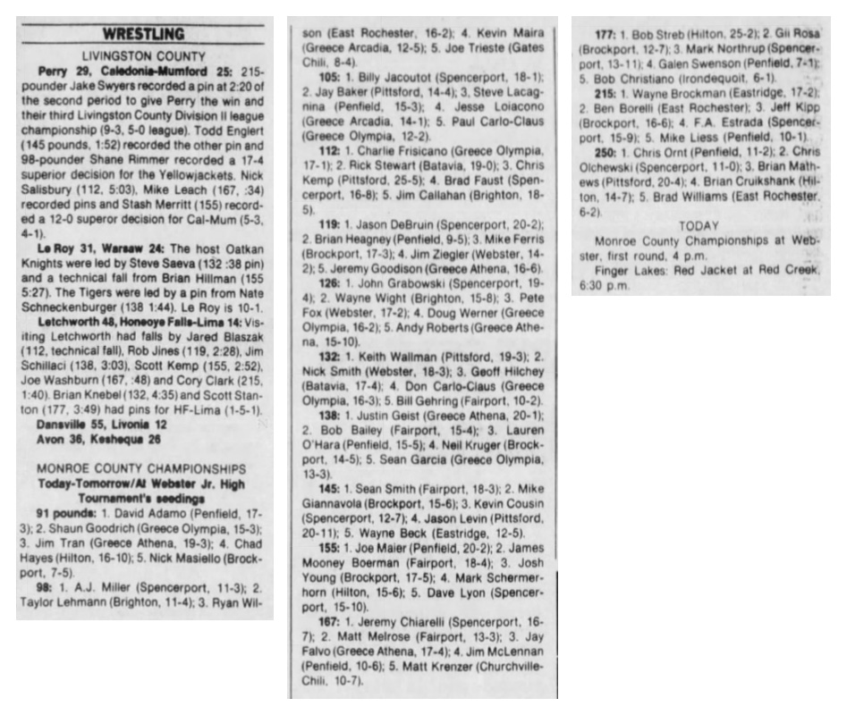 105 Steve Lacagnina (Penfield) > Billy Jacoutot (Spencerport) decision 5-0