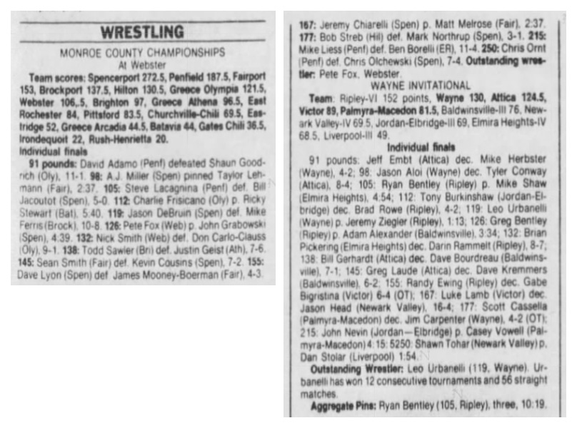 91 Dave Adamo (Penfield) > Shaun Goodrich (GO) major decision 11-1