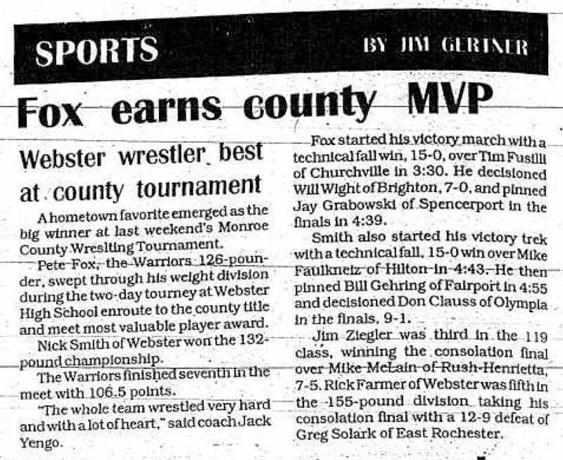 Outstanding Wrestler Award - Pete Fox (Webster)