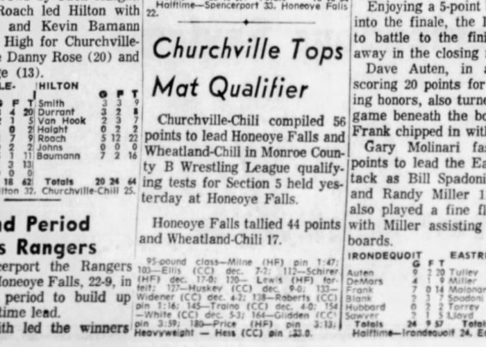 Churchville-Chili [NY] 56, Honeoye Falls [NY] 44, Wheatland-Chili [NY] 17