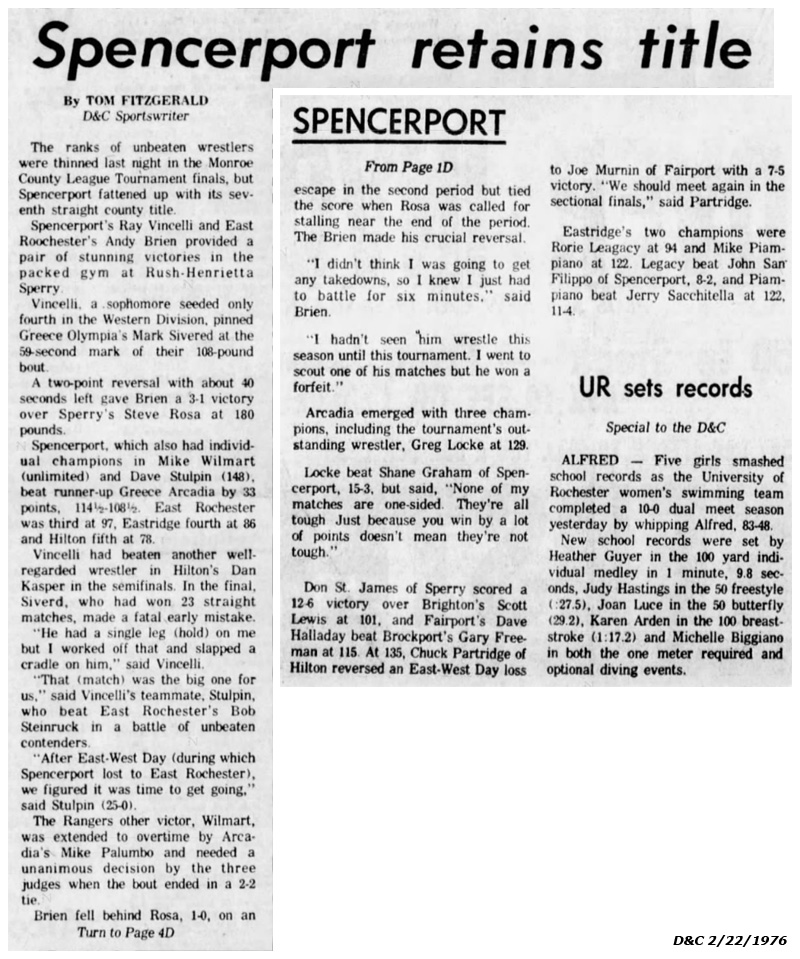 Dave Stulpin (Spencerport) > Bob Steinruck (ER) decision 7-0