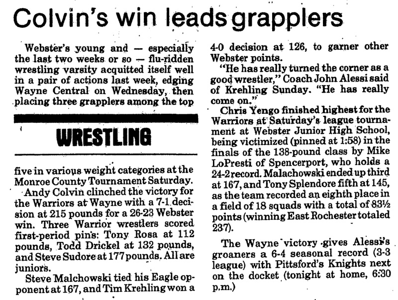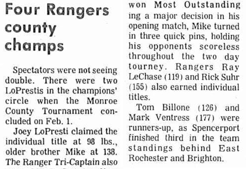 Mike LoPresti (Spencerport) > Chris Yengo (Webster) fall 1:58