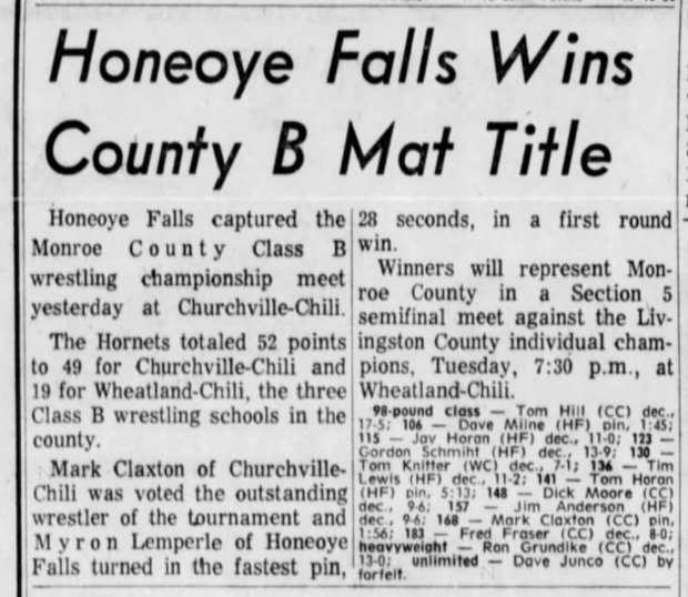 Honeoye Falls [NY] 52, Churchville-Chili [NY] 49, Wheatland-Chili [NY] 19