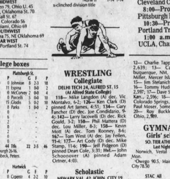 190 Jeff Pidgeon (Delhi) > Dean Cole (ASC) fall 3:31