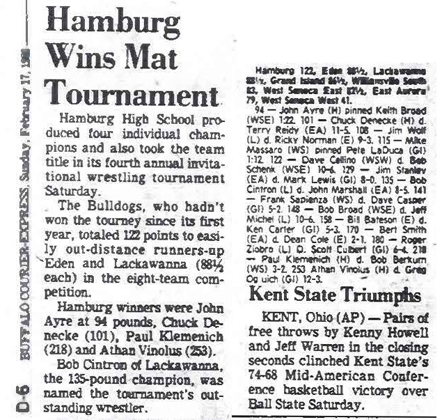 105 Jim Wolf (Lackawanna) > Rick Norman (Eden) decision 9-3