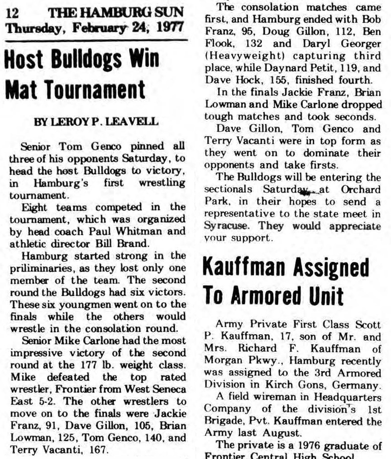 105 Dave Gillon (Hamburg) > Jeff Davis (Gowanda) decision 7-3