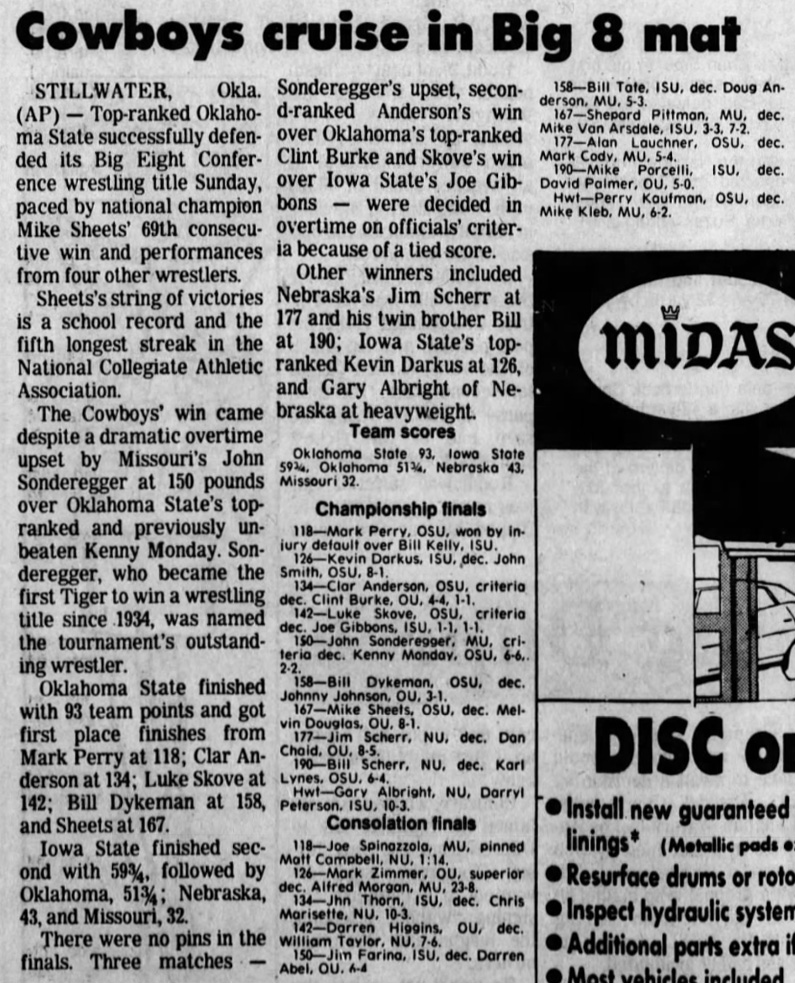 Mike Sheets (OSU) > Melvin Douglas (UO) decision 8-1