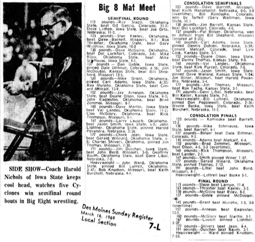 Ray Stapp (OSU) > Steve Lampe (ISU) decision 11-4