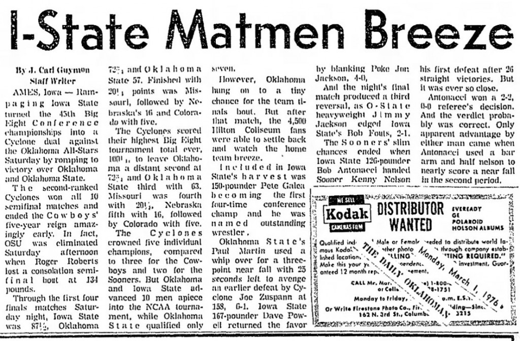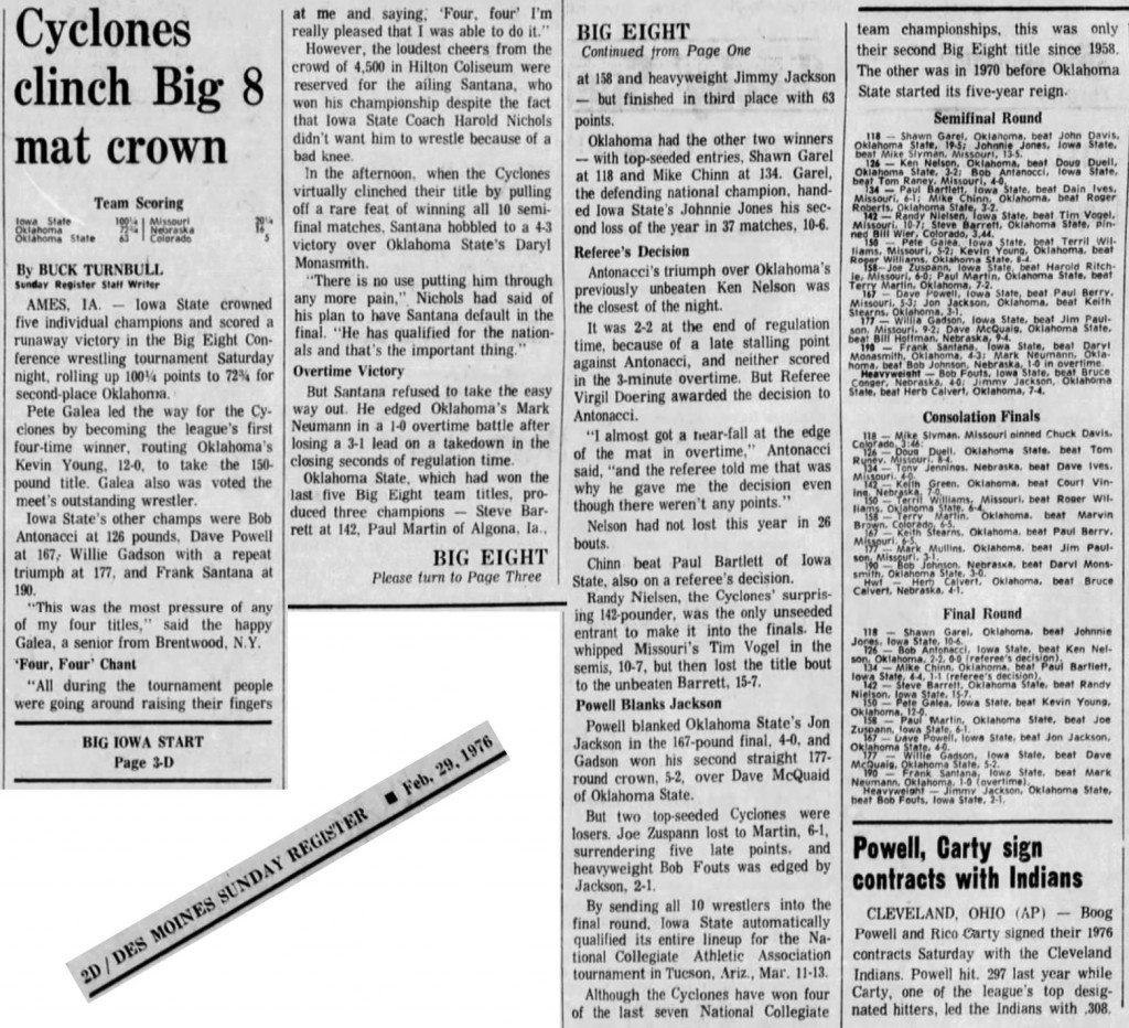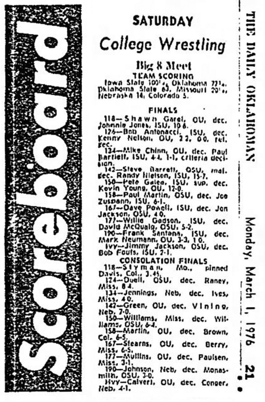Steve Barrett (OSU) > Randy Nelson (ISU) decision 15-7