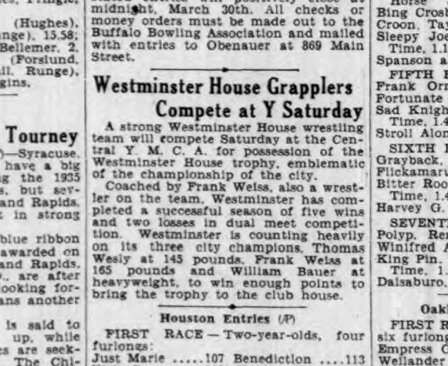 Central YMCA of Buffalo [NY] 35, Humboldt YMCA (Buffalo) [NY] 21, Westminster House [NY] 21, West Side YMCA (Buffalo) [NY] 13