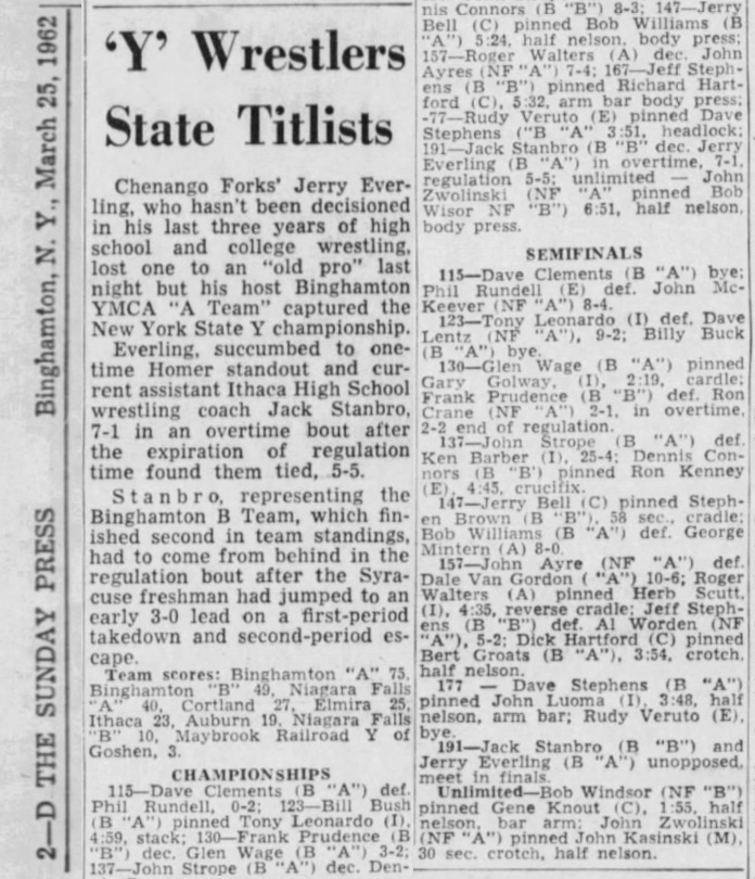 Bill Bush (BYMCA (A Team)) > Tony Leonardo (IYMCA) fall 4:59