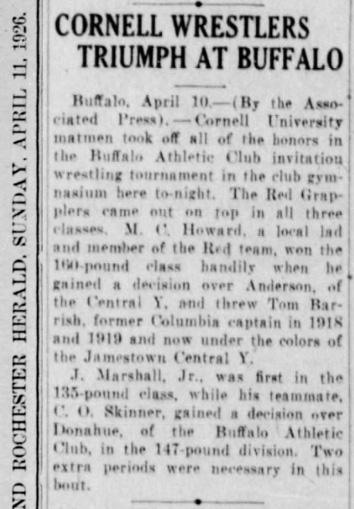 Milford Carlyle Howard (CU) > Thomas Barish (JYMCA) fall 4:00