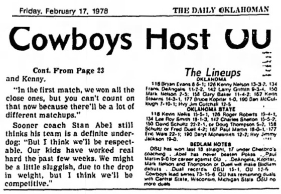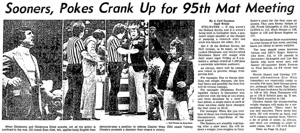 Oklahoma State University 22, University of Oklahoma 13