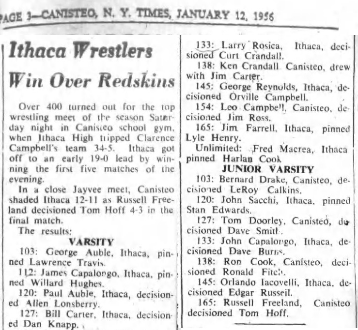 Jim Farrell (Ithaca) > Lyle Henry (Canisteo) fall 3:04