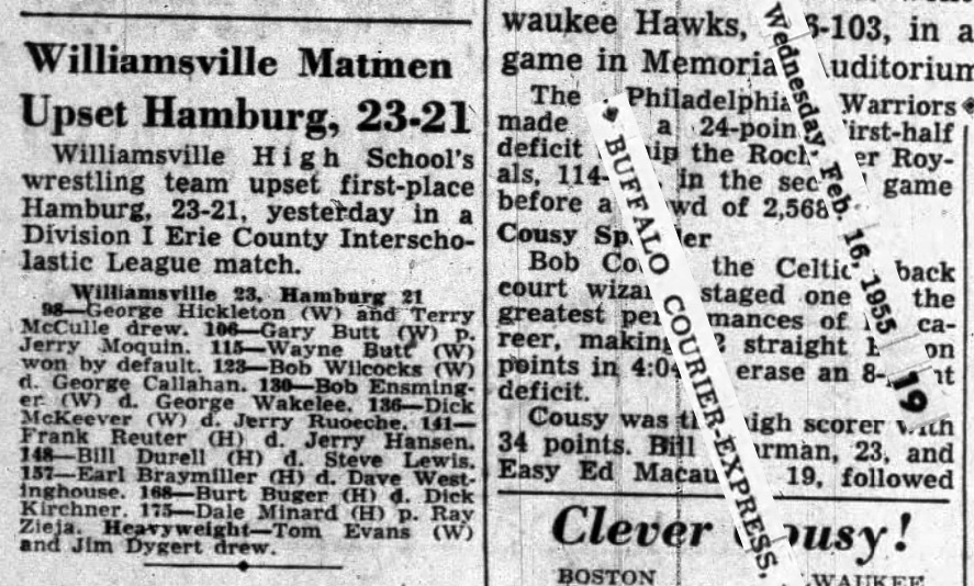 Bob Ensminger (Williamsville) > George Wakelee (Hamburg) decision