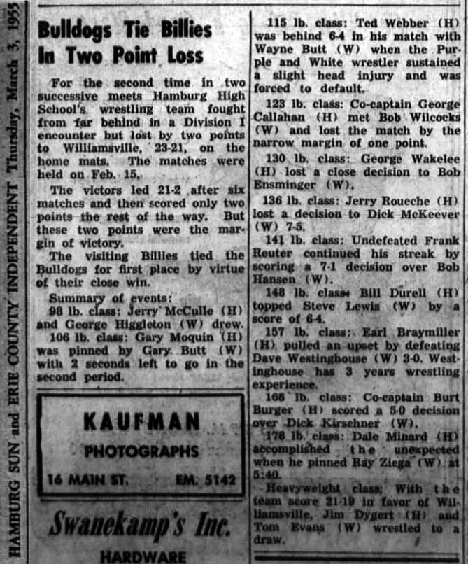 Bill Durell (Hamburg) > Steve Lewis (Williamsville) decision